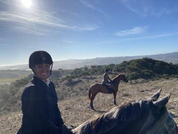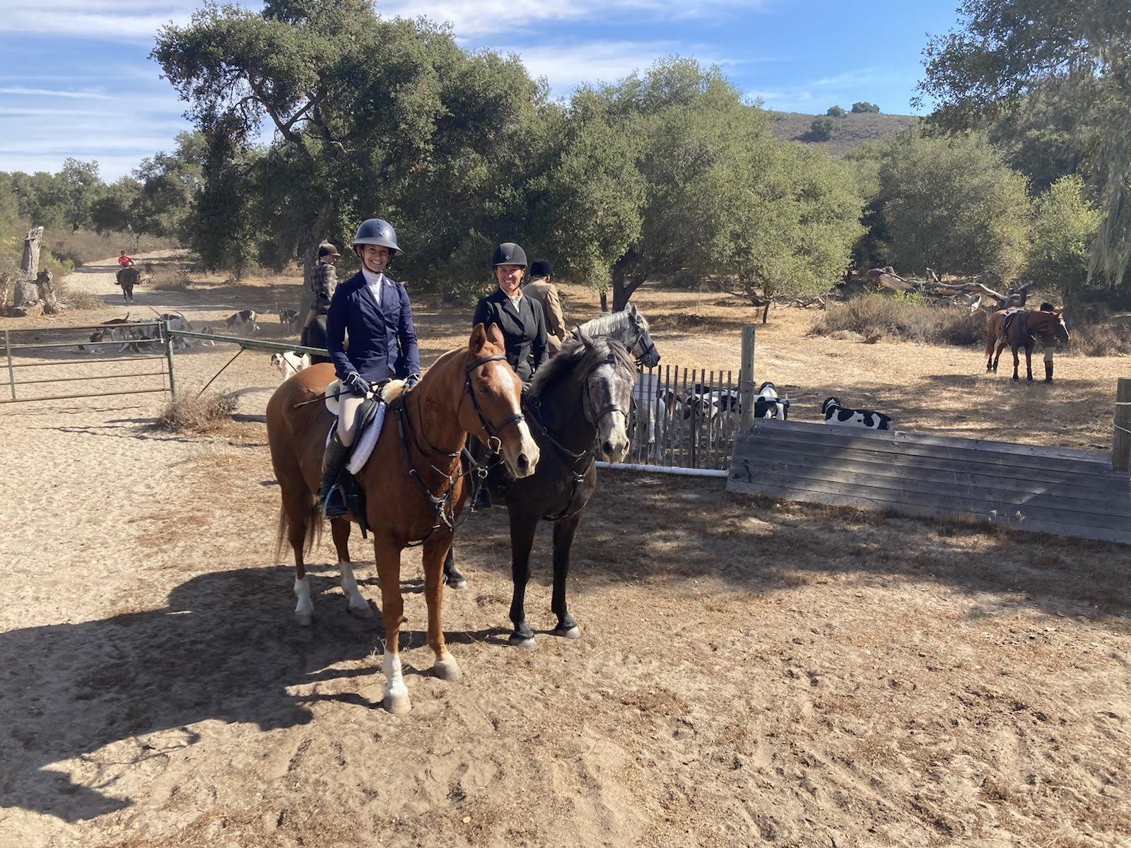 It turns out I didn’t need to worry. 6 year old Billy, a flunked out former professional bucking horse, was a perfect gentleman and didn’t put a foot wrong the entire four hour hunt. Foxhunting can be mentally hard for me- as a dressage rider it’s tempting to want to micromanage and be constantly balancing and correcting, so letting go and trusting the horse to sort out his own footwork and balance is challenging. Going through some of the tricky terrain, specifically the thick and forbidding looking chaparral, I finally just told myself that Billy had so far proved himself to be quite self sufficient and that he didn’t want to stumble or fall, so I should trust Billy to safely carry us through. By the end of the hunt I was confident cruising along and going over or through whatever came our way.