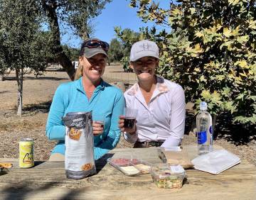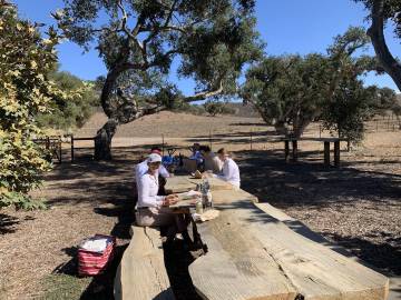 The next phase of the day was wine tasting at Kalyra Winery in Santa Ynez. The winery is owned by a Pony Club family and clients of Allyson’s and looks exactly like what you would envision when you think of a wine country vineyard- fields of grapevines in a bucolic valley with the foothills and mountains in the background. (Fun fact: the winery made an appearance in the 2004 movie Sideways, a rom-com that took place in Santa Barbara wine country.) We each tasted four wines (all were delicious so it’s hard to pick a favorite) while enjoying looking out over the vineyards and fields.
