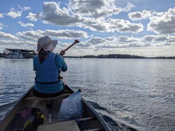 Once we were thoroughly chilled from our snorkel we got back into the canoe and kept going up the inlet. The Crystal River is highly developed and it was a strange juxtaposition seeing these federally protected animals amongst densely built waterfront properties. We stopped when we were at the end of an inlet to have lunch- I had made sandwiches and somehow forgot to put the turkey on them, which caused quite a laugh- and were able to observe two canoodling manatees while we dined.