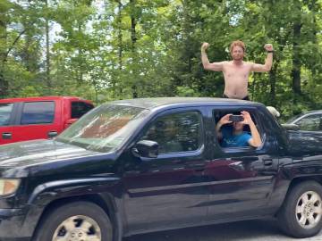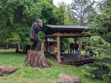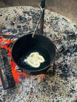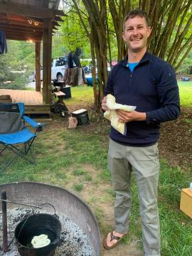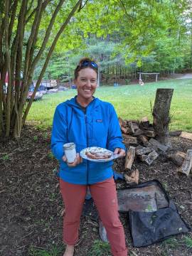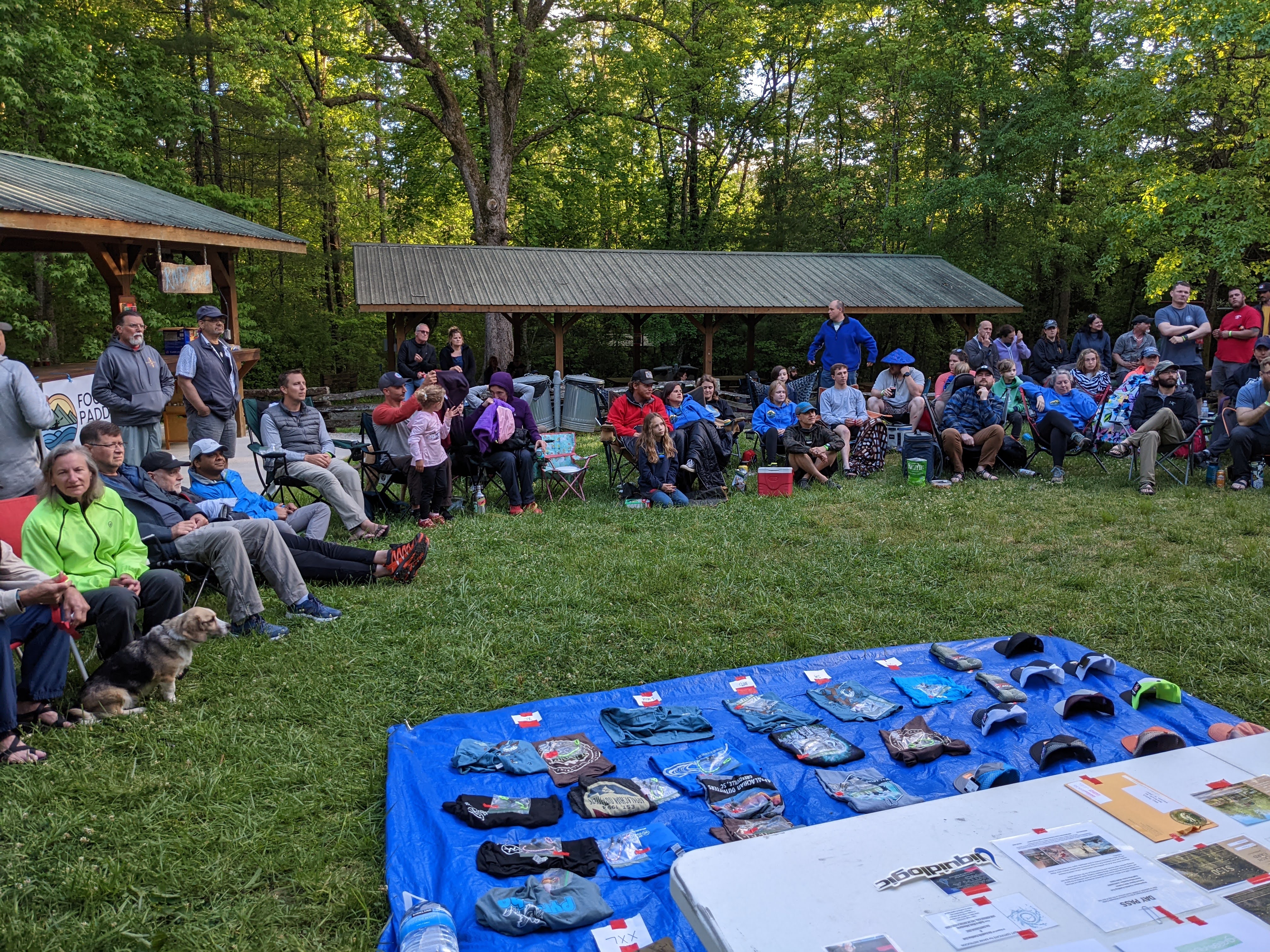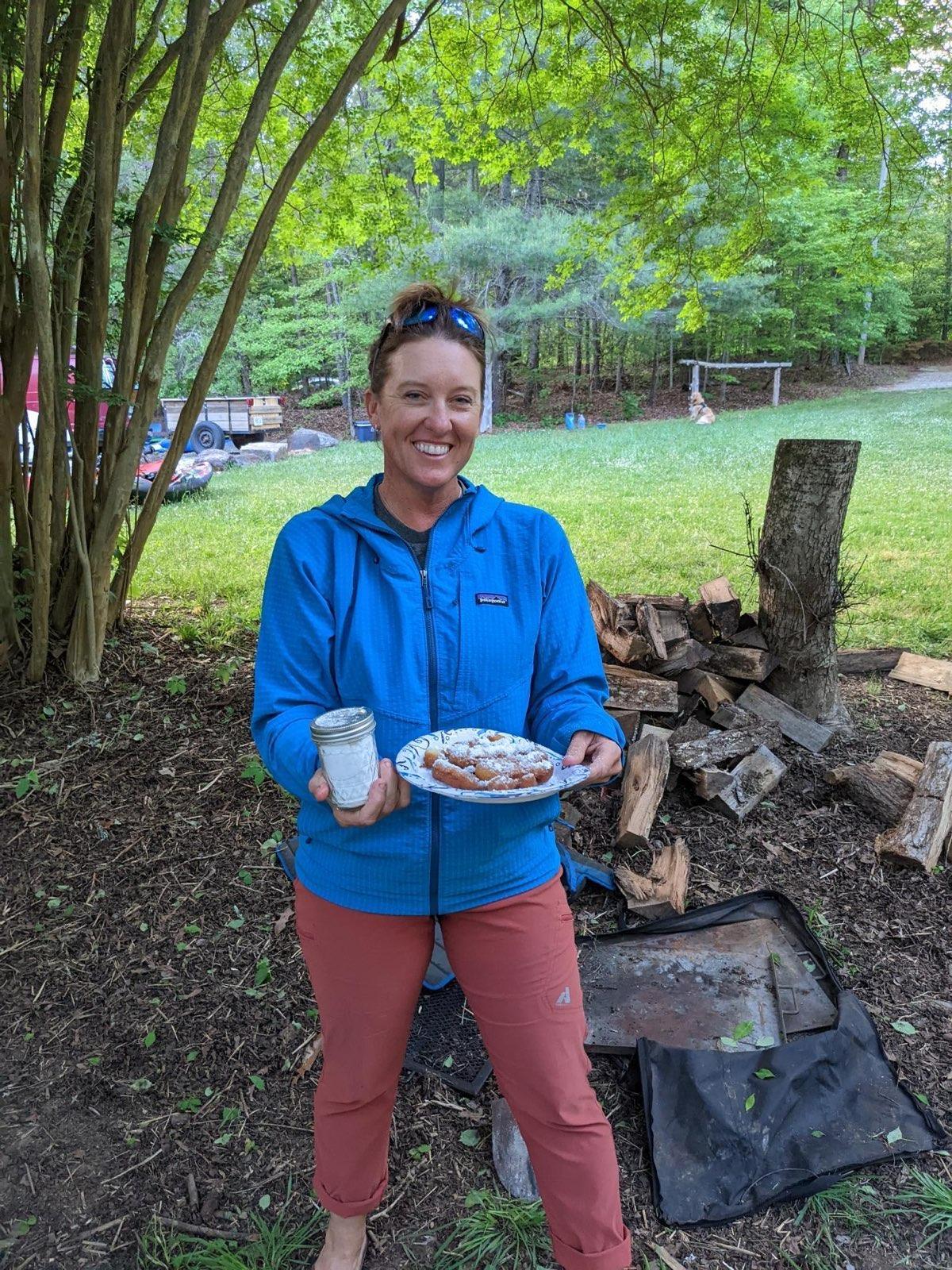 On Saturday night we had a barbeque cookout and enjoyed campfire time again while the club raffle went on. Over $6,000 of items and activities had been donated to the club for the event. Scott won a trucker hat donated by Appalachian Outfitters and gave it to me. Scott had a dessert trick up his sleeve… he had brought everything to make funnel cake over the fire. It was a hit and he cooked up funnel cakes for anyone that wanted one. (Several weeks later, FPC members that we run into are still talking about it!)