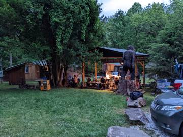 The official group paddle that had been organized for Friday was canceled due to the forecast, but after monitoring it closely for a while, a small group of kayakers decided it was safe enough to go run section 3.5, Thrifts to Woodall. Scott was part of the group and before he headed out to hit the river, set up the tent so I could start setting up the rest of camp and have a place to nap and relax while he paddled. The weather ended up being fine despite some showers and I enjoyed a restful afternoon of reading and lounging around camp.