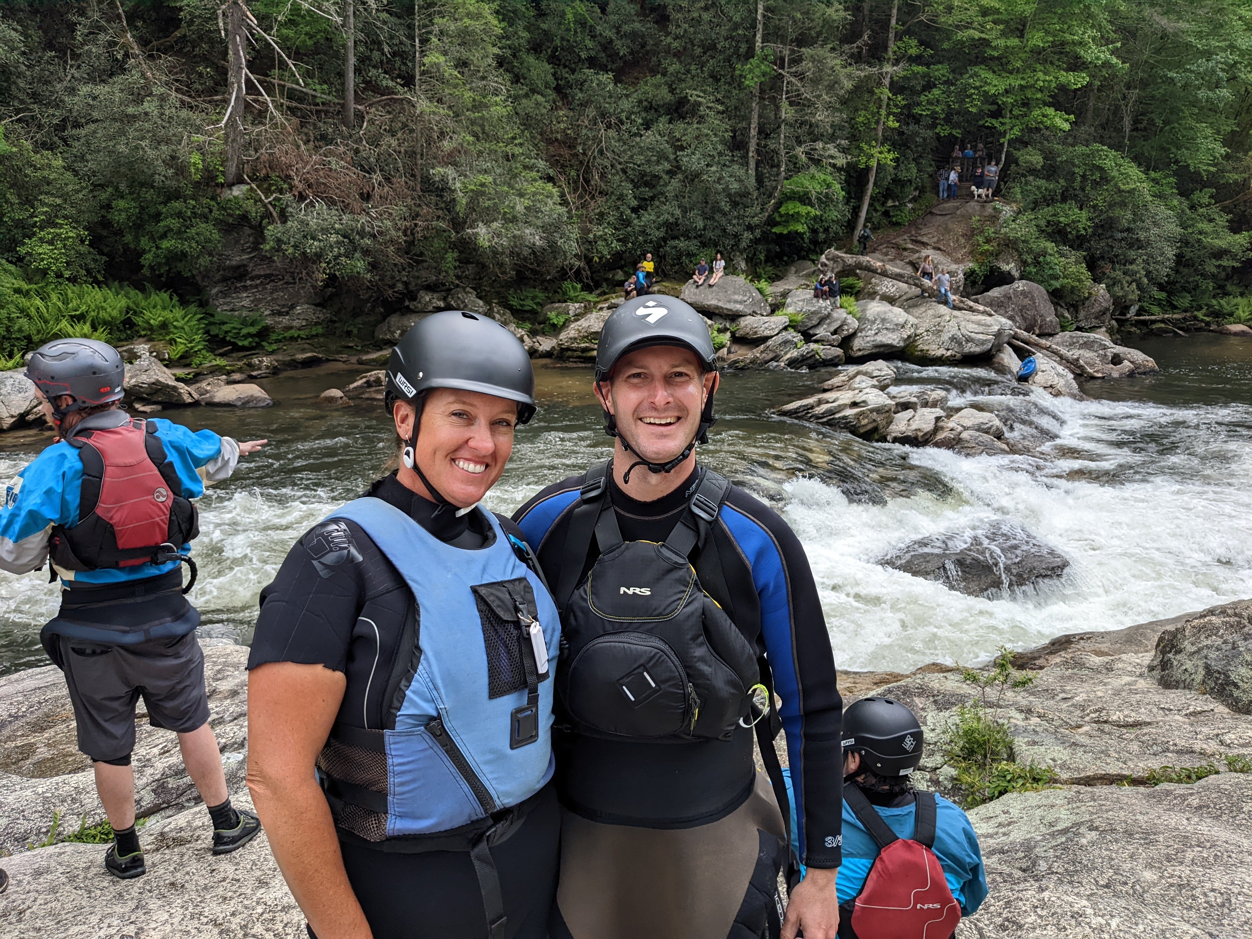 The famous “Wild and Scenic” Chattooga River is nearly in our backyard, so Scott and I jumped at the opportunity to participate in the Foothills Paddling Club’s annual Chattooga Fest tradition. A weekend of paddling on the historic river that is considered to be the “Crown Jewel of the Southeast” and camping with friends and other members of the club in early May sounded ideal. The amount of equipment and stuff that was required for the weekend adventure rivaled the amount of gear taken to a horse show and luckily we had a trailer we could use to schlep it to the Chattooga Sounds campground in Long Creek, SC, a little over an hour away.