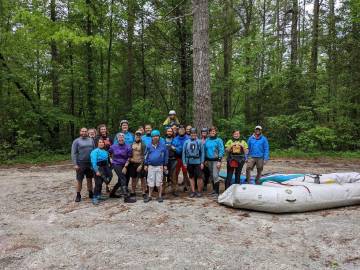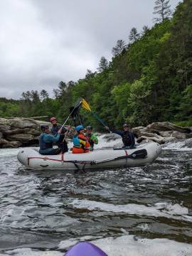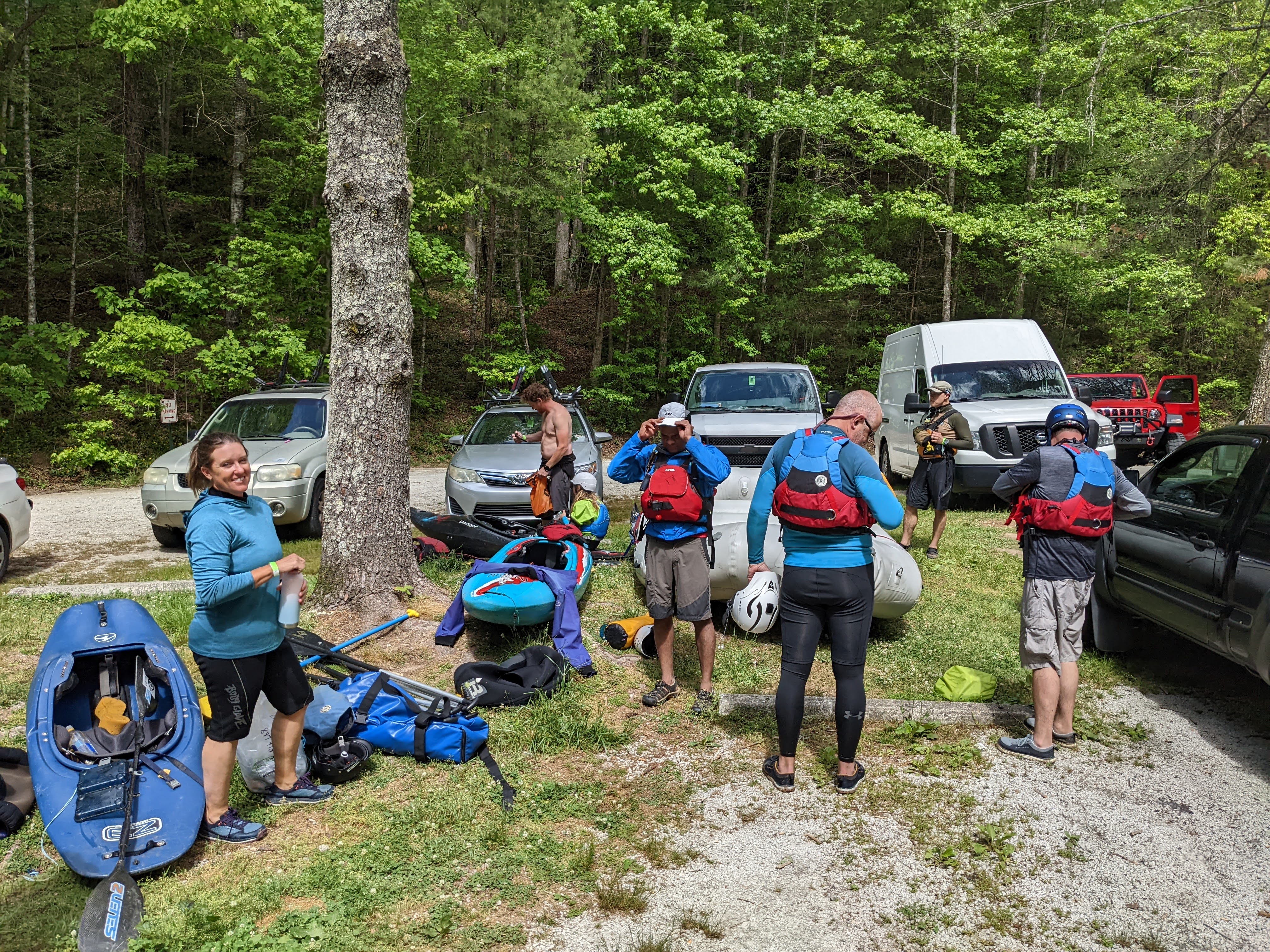 Saturday morning we got up, made a quick camp breakfast, and gathered with the group to talk about possible trips to take that day. Scott had been asked to bring his 16 foot river raft so that a raft trip could happen because the raft owned by the club had a hole in it. I would be on the raft, along with a few other FPC members, and we would be captained by a FPC member named Clayton. Scott and some other kayakers would be our “safety boaters” and would boat alongside us as we navigated section 3.5.