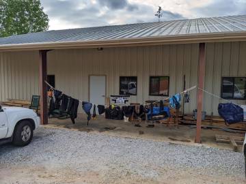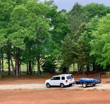 Trailer in tow, we left Easley Friday morning under ominous threatening skies and during the drive there I was nervously watching my weather app and radar- the forecast was calling for severe storms and possibly tornados. Not exactly ideal camping conditions… (Fun fact, even though Scott has camped probably hundreds of times more than me, about a quarter of my tent camping experiences have involved nearby tornados.) We arrived at the campgrounds and decided to hang out and socialize for a bit and put off setting up camp because of the weather threat.