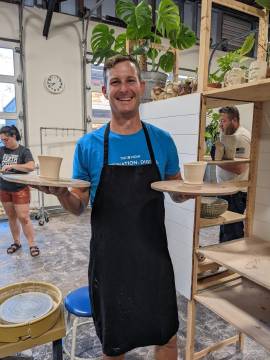 In late May as a date night, we took an introductory pottery class one Friday evening in downtown Greenville. It turns out that making clay behave in a manner in which is necessary to become recognizable as some sort of vessel (vase, glass, mug, bowl, etc.) is much trickier than it appears. We had a fun time learning how to make little vases and after we formed them we picked which color finish/glaze we wanted and the pottery fired them in their kiln and we picked them up a few days later. They are currently sitting empty but are patiently waiting to be filled with soil and to become little planters. The Wandering Bard is in the same complex as the pottery and we went over there to try mead afterwards. Mead is alcohol that comes from brewing and fermenting honey so it seemed apropos to try it. It is quite sweet and while interesting and worth a try, didn’t really appeal to either of us.