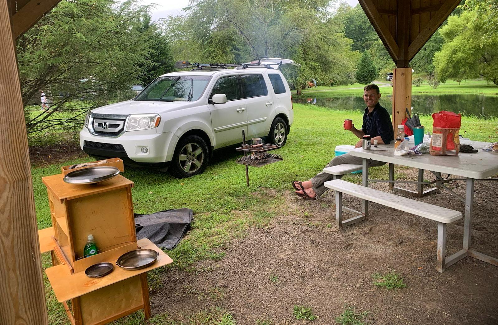 We took a trip to the Hiawassee on Sunday. This time I was in a kayak! The Hiawassee is a wide and shallow river and has lots of shoals. The section we kayaked was mild and only had Class I-III rapids but the sound that the shoals create is rather impressive. That noise combined with my lack of familiarity with the river caused me to have a minor meltdown and panic attack about ⅓ of the way down the river. I am appreciative of all the fellow paddlers on the trip that offered me support and kind words while I was scared and stressed. Despite my freak-out, I actually had a successful PFD but was quite thankful to be back on dry land and back at camp later that evening! Dinner was hamburgers cooked on the mountain-man grill. Scott’s camp dinners are to die for and this one didn’t disappoint.