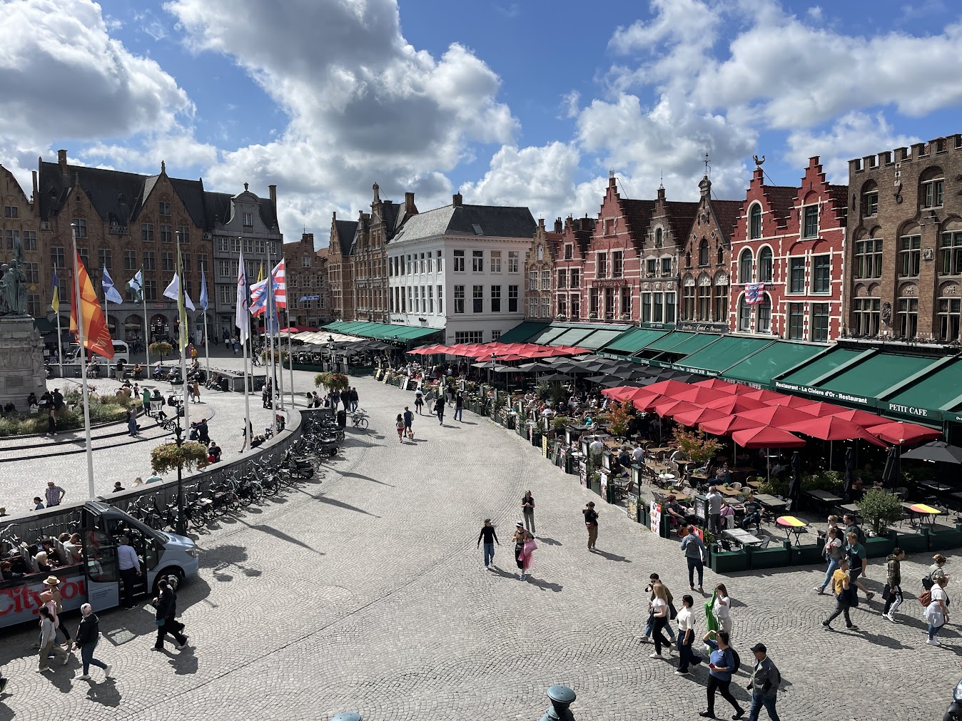After the pee theft, and our walk around the highlights of the town, we took a break and went to the Duvelorium, a bar devoted to just Duvel beer, located in a stunningly beautiful medieval building, overlooking the market square. The outdoor balcony offered incredible panoramic views and the vantage point made for extraordinary people watching. The beer, like most Belgian beers, was simply divine; strong but smooth. We got a flight of beers and I tried hard not to take more than my fair share but I’m not sure how well that played out.