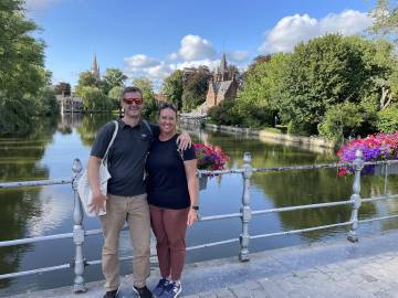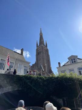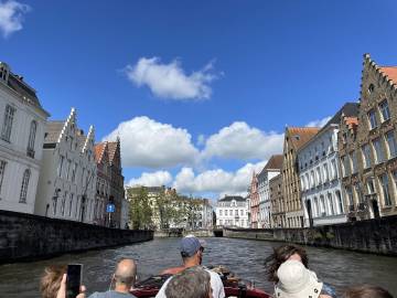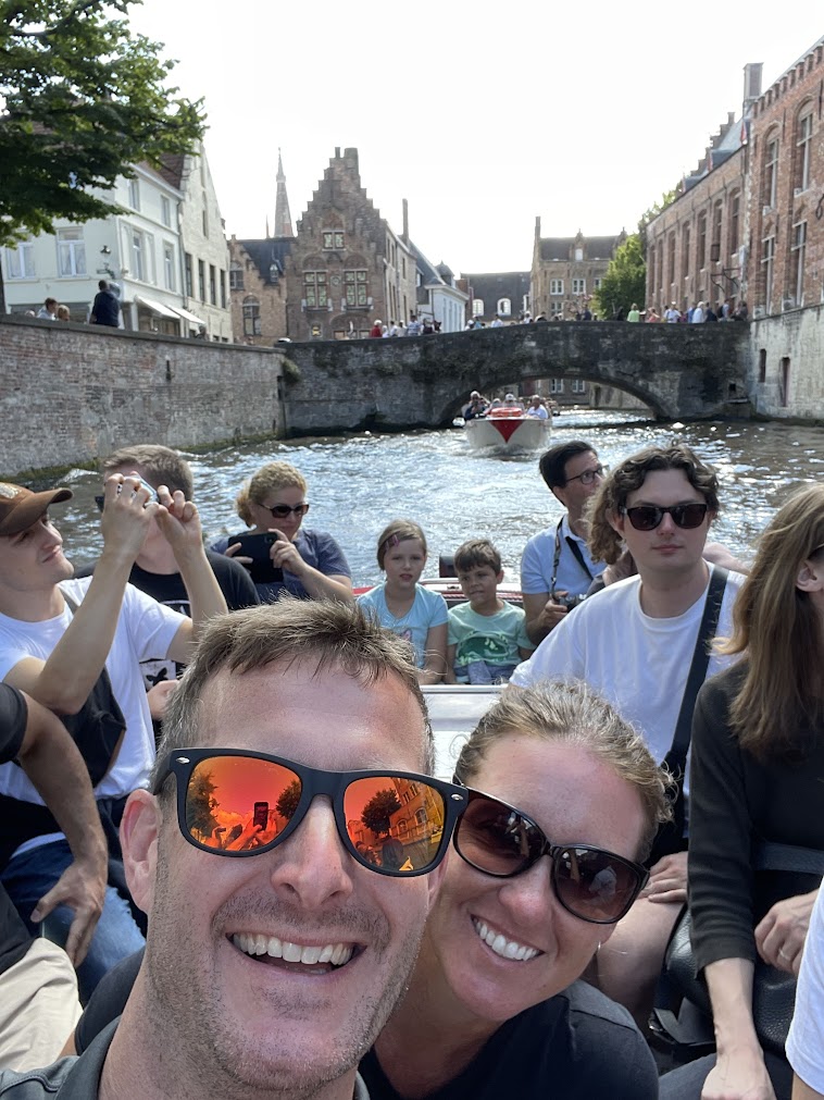 Thoroughly beered, our next adventure was a boat ride on the canals that Bruges is so famous for. It was fairly inexpensive and had unusual seating- the small boats had standard bench seating on both sides that faced inwards but had a row running down the middle only one person’s width that faced forwards. Scott and I got seated in this unusual middle row but it turned out to be ideal because we had great views. The tour guide gave information about notable sights and bridges that we passed. We both agreed that this was a better boat and canal tour than the one in Amsterdam and this method of sightseeing provided some of the best views of the “Venice of the North.”