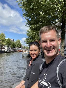 We were scheduled for a canal boat tour (with Dutch cheese, wine and beer!) later that evening. There had been on again/off again rain showers that afternoon and evening so the boat had it’s clear plastic curtains let down to protect us which made for a little difficulty viewing the sights, however we were still entertained by throwing back a few Heinekens and chowing down on gouda and edam cheese while gliding along the canals. Our tour guide was a little lackluster but the overall experience was enjoyable- it certainly ticked the “do the thing you’re supposed to do in the place you’re supposed to do it” box.