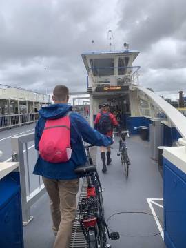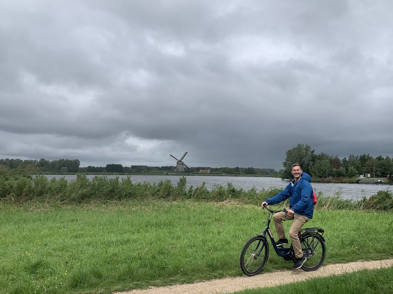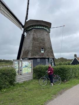 The next morning we were on a mission to rent bikes to trek out of the city to the village of Zaandam to see windmills- a very Dutch experience for sure! I was a nervous wreck peddling in Amsterdam but once we got out into the smaller suburbs and quaint villages and then into the parks I calmed down and was able to enjoy the sights. The wind was fierce (not quite sure why I was surprised by this since it is advantageous to build a windmill in an area that experiences wind) which made the ride feel hard but the sights were well worth it once we got there. We had a quick picnic lunch and walked around the windmills for a bit before venturing back. This time we took a more direct route and it was easier since the wind was at our backs. We had to take a free ferry both going and coming and it was entertaining to see the bikes outnumber the cars nearly 3:1. All told, our bike ride was about 25 miles and was definitely the longest bike ride I have ever done and my rear-end would remind me of that for the next few days, although it was a fantastic way to spend a day.