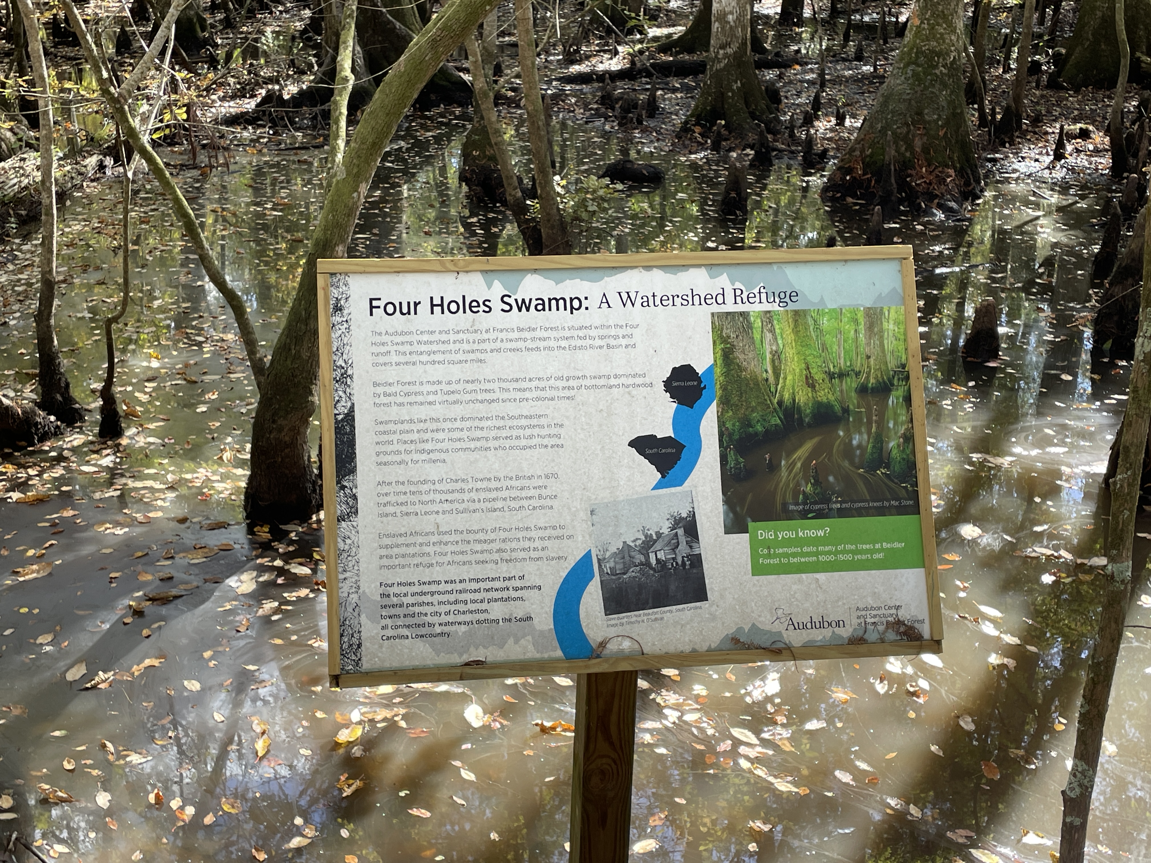 On the way down to Charleston and Becky’s we stopped to visit Beidler Forest, an 18,000 acre nature preserve owned by the Audubon Society. I had always wanted to see it but had never gotten the chance. We spent about 2 hours walking along the boardwalk that passes over top of the old-growth cypress-tupelo swamp forest and enjoyed learning about this unique ecosystem and looking for the birds and animals that inhabit it. We had been lent binoculars at the visitor’s center and were thankful to have them because it let us zoom in on a sun basking alligator in a pond. Immediately after we saw the alligator a barred owl landed just a few feet away from us, its lunch, some sort of rodent, in its talons. It was seemingly unphased by us and chowed down on its meal right next to us before flying off to a nearby tree to rest and digest. Its wingspan was impressive!
