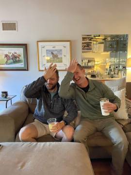 We were exhausted from the last few days but joined the rest of the crew to watch the Torsilieri’s beloved Eagles defeat the Cowboys in a close game that evening. In the afterglow of their win, we all sat out on the screened-in patio enjoying some various libations. The sliding glass door of the house must have been cleaned quite well in preparation for guests because Jon, Alex’s brother, walked right into it, nearly knocking him down and leaving a forehead impression on the glass. We were all supportive and laughed like hell until we were all nearly crying and rolling on the ground, watching poor Jon clutch his head as he saw stars. It wasn’t half an hour later that Scott did the same thing! The next morning they both had sore foreheads.