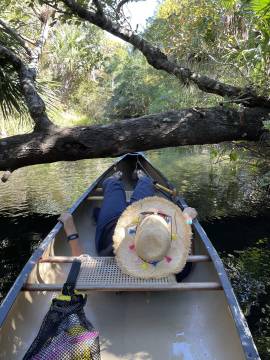 The website for Juniper Springs had claimed that no disposable containers are allowed on the river so I was nervous about how to carry along our standard canoe fare (granola bars, crackers, trail mix, string cheese, sandwiches, etc.) that we typically bring. Ever the rule follower, I found one of the employees at the visitor’s center to inquire about this. They looked me up and down and declared that I didn’t look like the type of person that would litter and deemed me trustworthy enough to be able to take our rations along and responsibly pack our trash back out. This made me beam with pride! (Just like the time that I saw a kitten on the side of I-385 and stopped to rescue it and then ended up surrounded by both Greenville County Sheriff deputies and Greenville City police who after doling out some initial grumblings and chastisement about my decision to play Paw Patrol declared that I didn’t look like the typical person that walks down the interstate. Look at me winning at life!)