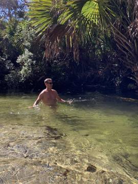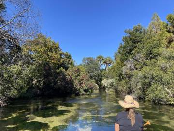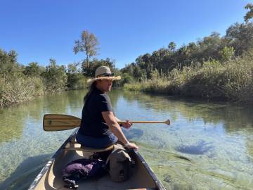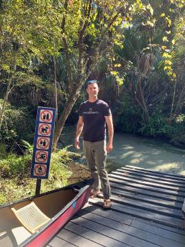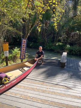 When we finally arrived at the takeout we were treated to an authentic Florida-man vignette playing out at the landing. A real live Florida man was standing knee deep in the water bathing his pitbull. (One of the reasons this river is so pure and clean is that the spring and most of its run is located in the Ocala National Forest which means it is protected from runoff from fertilizer and livestock that has affected and polluted most of the other clear rivers in Florida.)