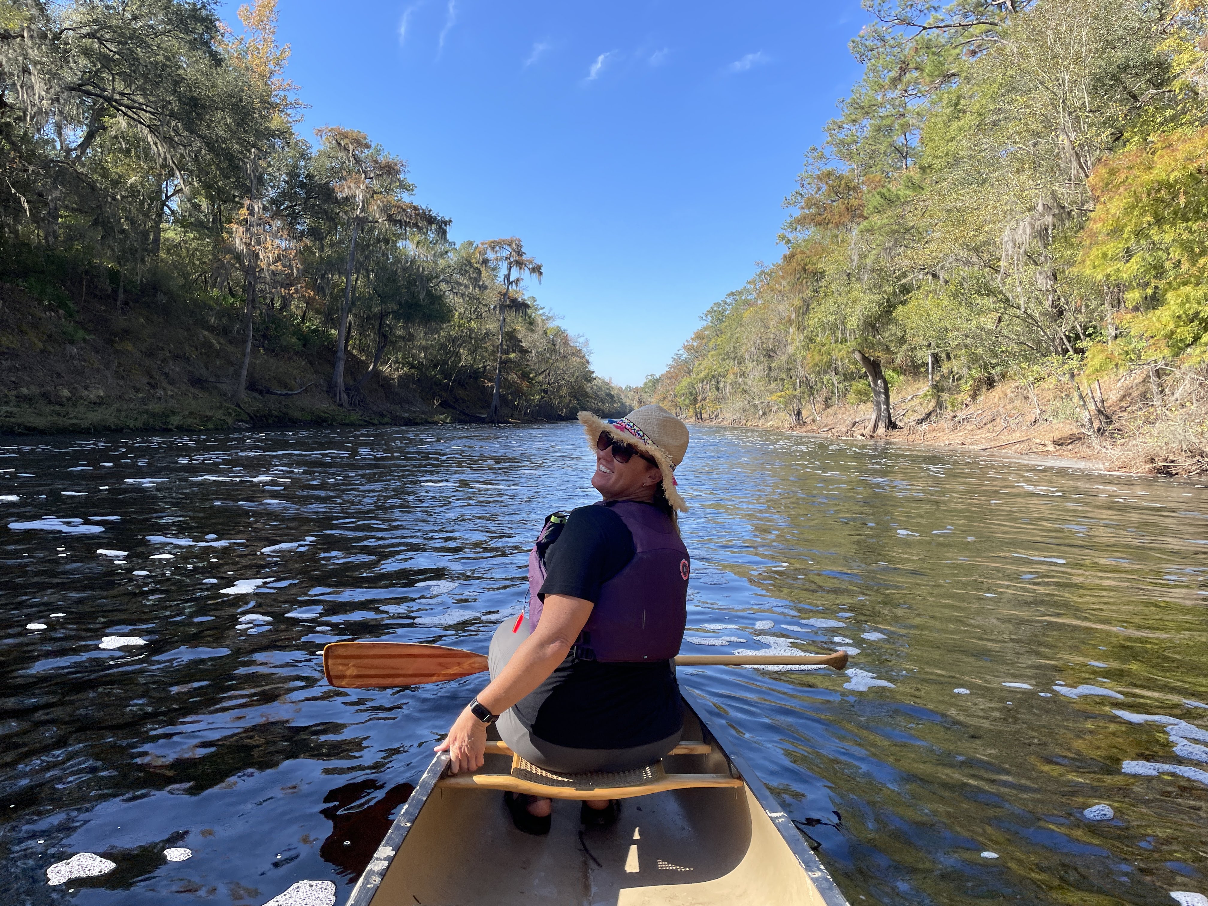 It seems as though every time Scott and I explore and paddle a new-to-us clear water river in Florida for the first time we declare it our new favorite Florida river. Juniper Creek, formed by the famous Juniper Springs, was no exception, and to date, is our favorite Floridian body of water. We were able to explore it on Sunday November 5, 2023, the day after Alex’s birthday bash. We left Gus and Alex’s and headed to the expansive Ocala National Forest to find the Springs. The Juniper Springs Recreation Area turned out to be less than an hour from their house which was convenient.
