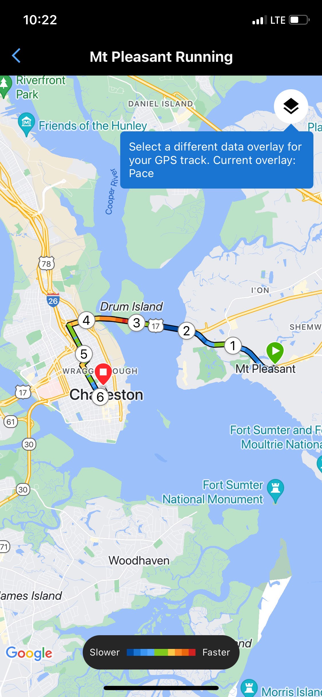 Finally we crossed the start, started our watches and apps, and away we went. I needed to hit 10:45 minute miles to make my goal time and was able to easily make that and actually had mostly negative splits for all 6 miles.