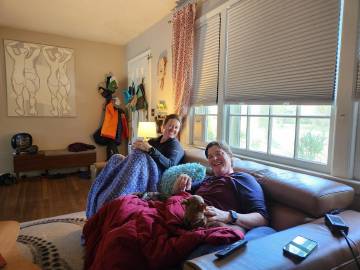 We lounged around the rest of the day, snacked on some of the junk food and beer I had bought for the occasion, and dodged attacks from PJ who is always scanning the room for a bare and unattended ankle to chomp. Becky took us to Frothy Beard again for pizza (and beer for me) and we devoured it. I think we were in bed by 8 that night.