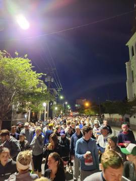 With just a few minutes to spare, we slid into the front of our corral and listened to the announcer and DJ hype up the crowd to see off the competitive wave of elite runners who would be finished with the race before we even reached the summit of the Arthur Ravenel bridge (the winner this year was a 22 year old Ethiopian runner named Ali Abdilamana who ran a smoking 27:53, and the top female was 25 year old Kenyan runner Sarah Naibei with a time of 31:41. I should note that her 10k time is my 5k PR time…). It took us about 13 minutes to work our way up to the start line because there were that many people running and the majority of them were behind us!