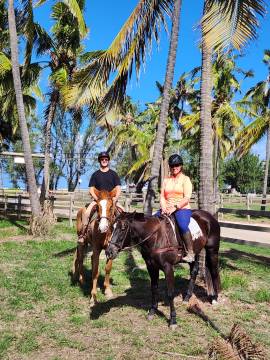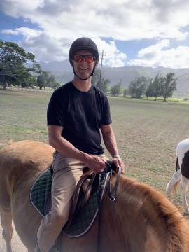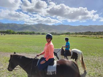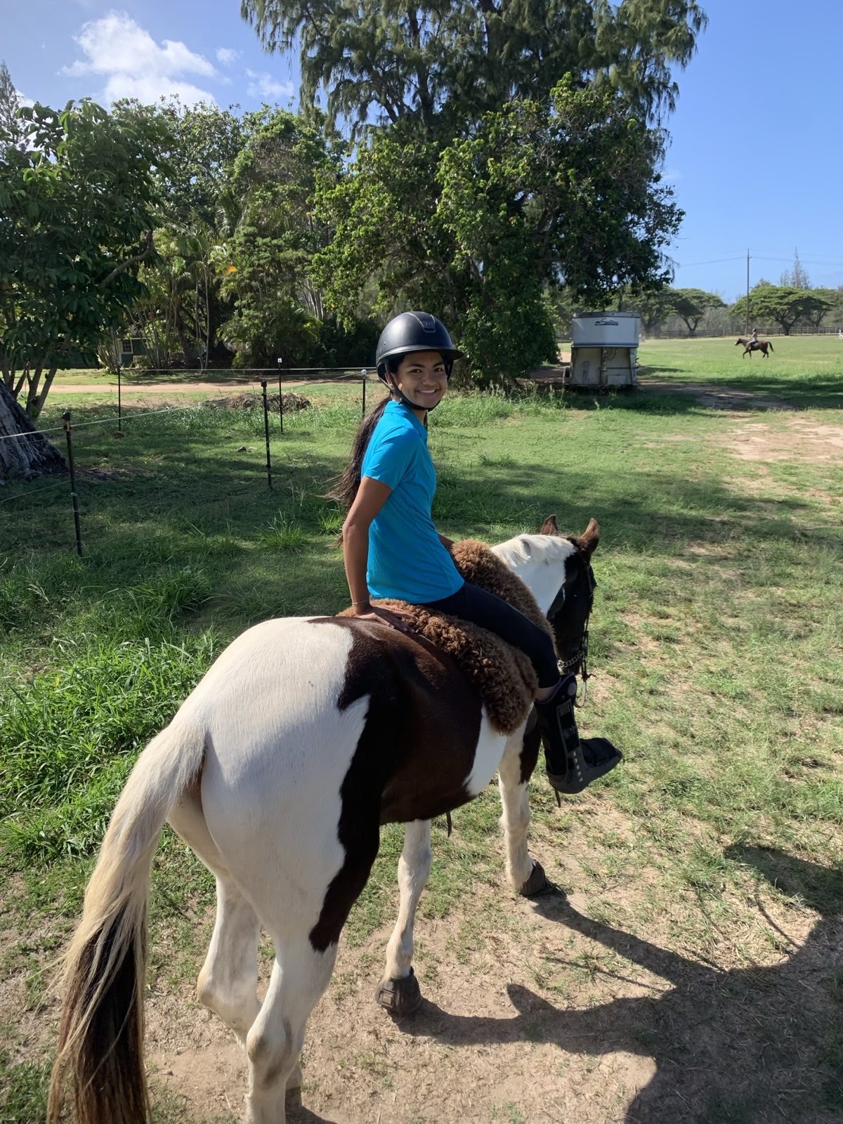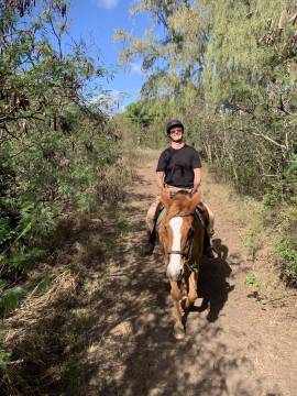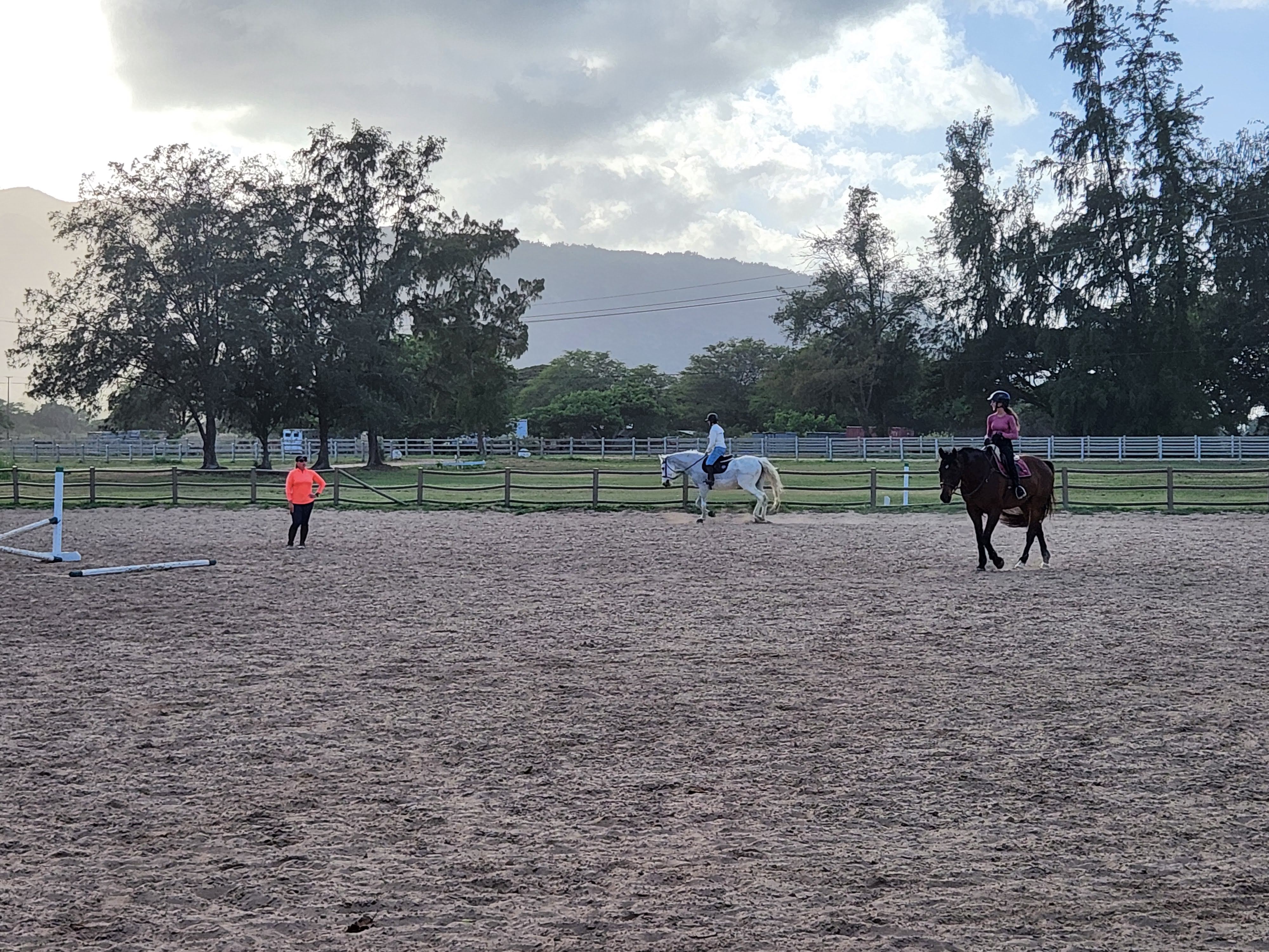 I wrapped up the work day teaching a group lesson at Kawailoa and was thrilled with the quality of riding that I saw. These riders had the classically correct “basic balanced positions” that USPC tries to instill in all its riders and it was exciting to see. Often in geographically remote areas, riders lack access to quality instruction and you see this come through in unbalanced, weak, and incorrect positions. This was absolutely not the case here and it made my job a breeze because I could just give them tools and exercises to layer on skills and further develop their effectiveness, rather than having to fix bad habits. I had a “Pony Club proud” moment during this lesson, pleased that the USPC system and standards were correctly reaching and influencing riders in Polynesia.