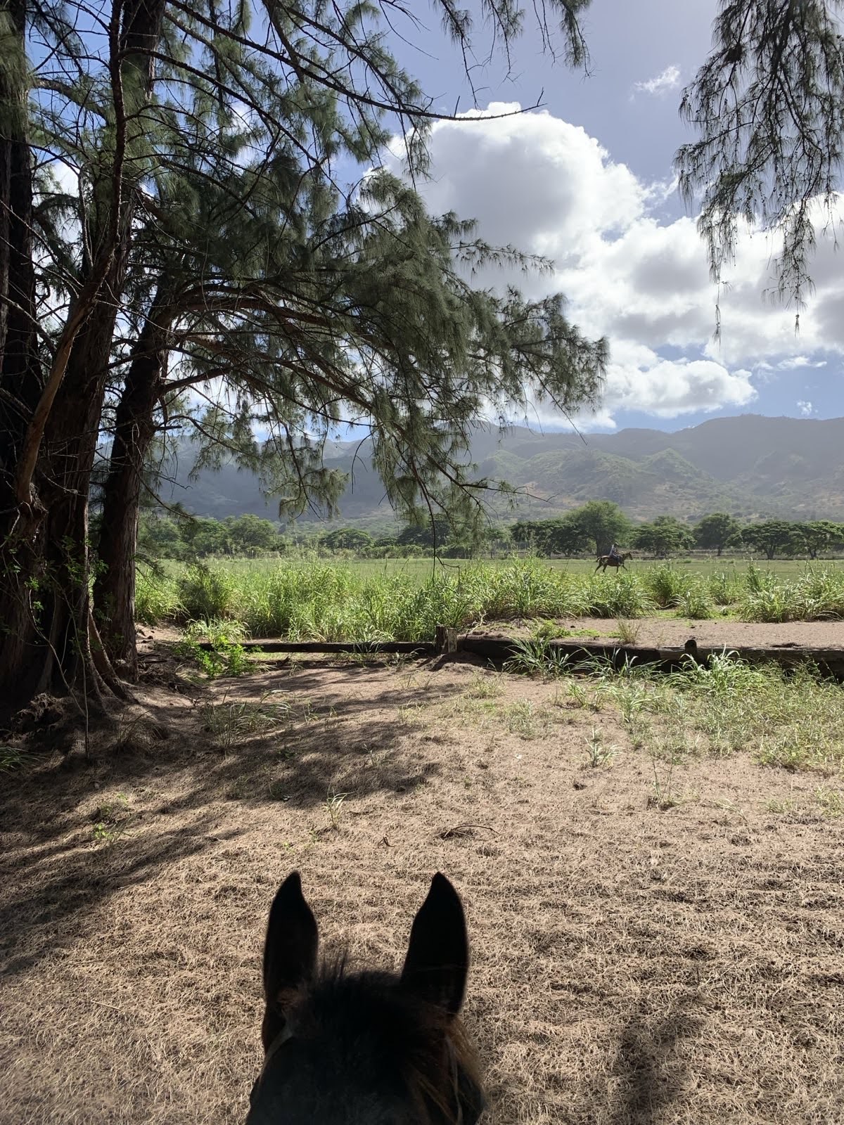 When I had originally spoken to the organizer of the Hawaii region certifications about staying on and teaching, I was envisioning several days of traditional “mounted meeting” type clinics where I would be teaching back-to-back lessons at a facility from morning until late afternoon. However, what actually transpired was very different, and I was not at all sad about it because it meant I had lots of time to play and explore on the island! Had we come to Oahu at a time when kids were off of school this might have been different but the timing of our visit meant that I was somewhat limited to teaching the adults that had flexible work schedules and the kids after school. Today was one of my busier teaching days and I was scheduled to go back and forth between two barns on the North Shore for several lessons.