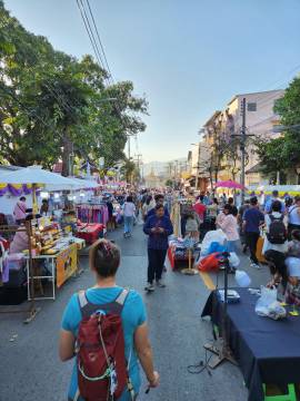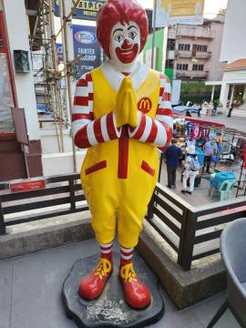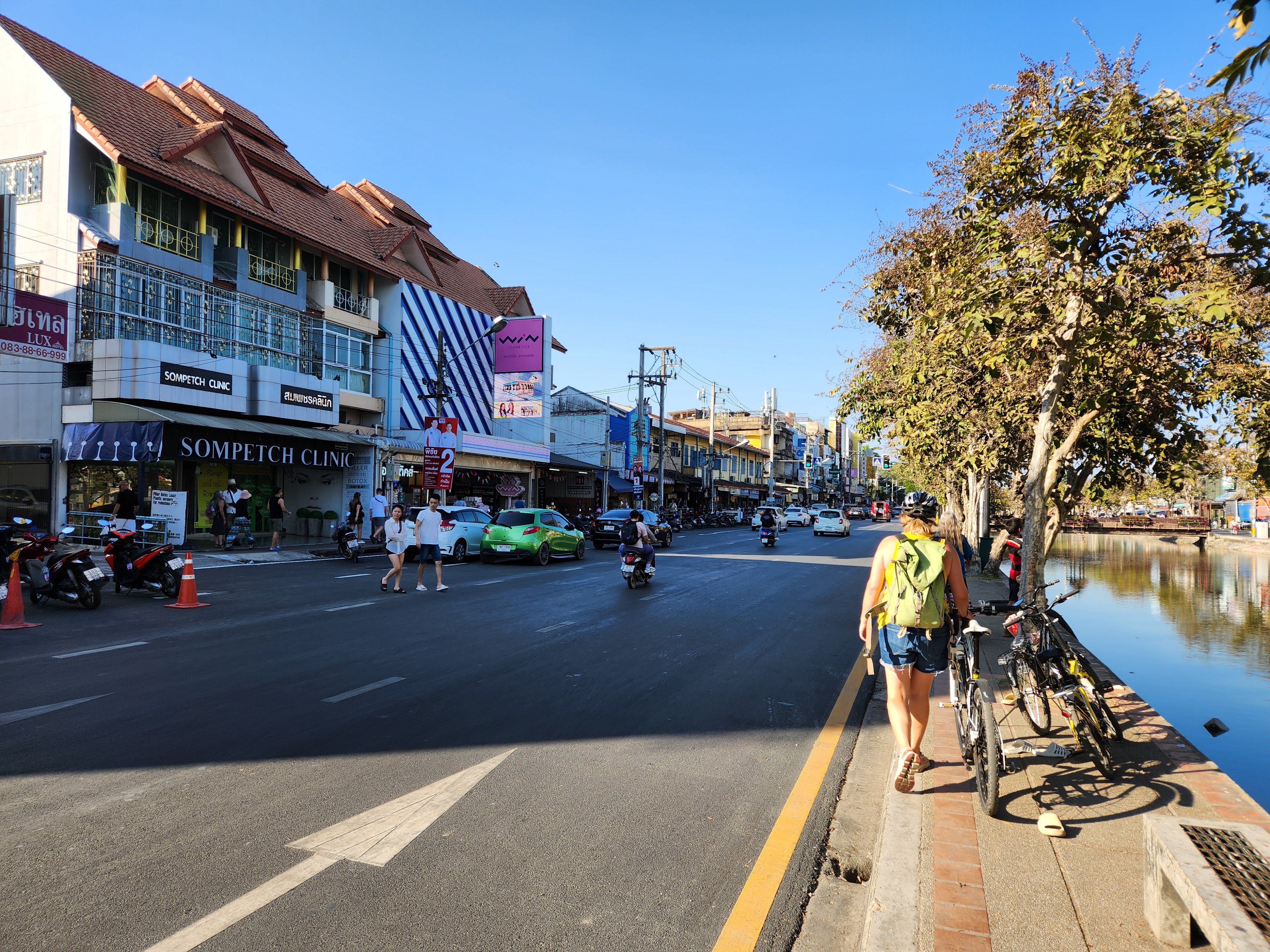 We headed back to our hotel. I decided a nap was in order and Scott decided that he wanted to explore more of Chiang Mai. He wandered northeast where we hadn’t ventured yet and first ended up in an area with several clothing stores. He decided to see if any of them carried the “Made in Thailand” Woolly brand merino wool shirts (Amazon) that he wears and specifically picked for travel due to their quick drying properties and their ability to repel odor. No luck. So he continued along and found an art gallery, the local Muay Thai boxing arena, popped into a McDonald’s to see how their prices compared to back home, saw the night bazaar being set up, and then got a lime smoothie. He reported that the lime smoothie made for a rather “puckering experience.” I eventually texted him inquiring as to his whereabouts and he started heading back to Fang Chiang Mai, walking along the canal.