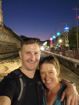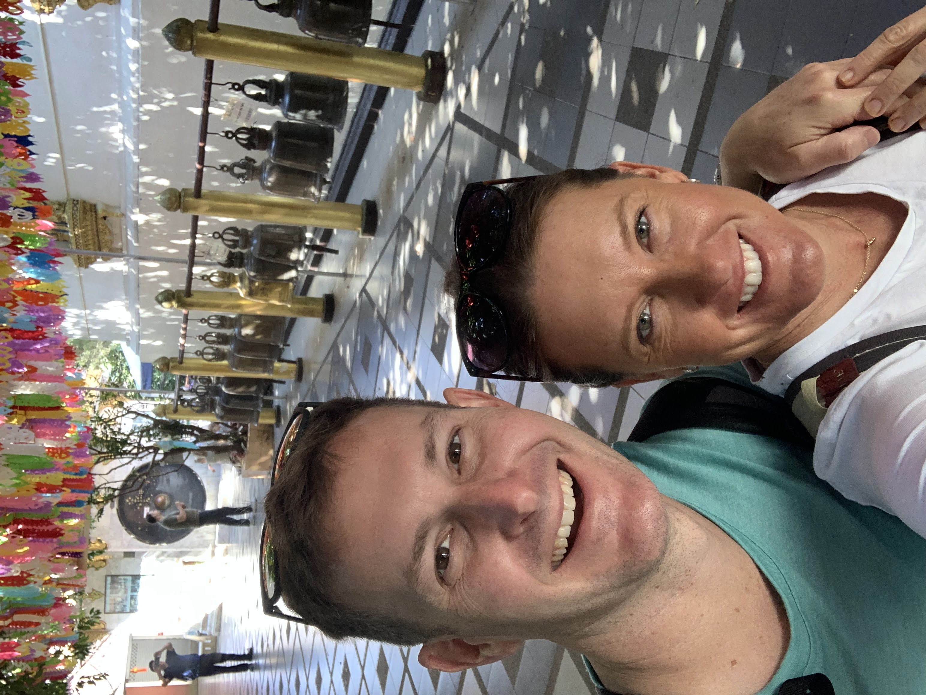 Funny story that we will refer to as The Thai Sock Incident: The first day that we had arrived in Chiang Mai, I had sent my laundry out to be done, orchestrated through the hotel front desk. I had asked Scott if he wanted any of his clothes washed and he had reluctantly contributed a pair of shorts and a pair of Darn Tough merino wool socks (Amazon). His reluctance is an important detail here, as is the brand of socks; they cost about $20/pair. Another pertinent detail is that he had strategically only brought two pairs of socks on the trip. So, the laundry came back the next day, all nice and neatly folded. Except that Scott’s socks were missing. He became quite distressed and we went through it all to see if they had somehow gotten folded up with the other clothes. Nope. Scott immediately wanted an APB put out on the socks stat. This was not ok. I messaged the hotel manager to see if he would inquire with the laundry service and have them hunt them down. Somehow Scott was able to fall asleep that night, but he was NOT OK. The next morning as we were headed out on our adventure he went to touch base with the manager to get a sock location progress report. He even showed them a picture much like you would show someone a picture of your dog had it gone missing. The manager said that the laundry service looked but couldn’t find them. Unacceptable Scott said. Tell them to look again. Fast forward to a stressful day. Scott inquires again, and is told that they found one of the socks. Still unacceptable. What on earth is he supposed to do with just one sock? These are $20 socks he tells the manager. The manager scoffs at this and says “how can a pair of socks cost $20?” Scott pulls up an internet link as supporting evidence. Tell them to look harder. Fast forward to that evening. As we are walking down an alley on our way home to the hotel, Scott sees some laundry drying on a clothes line and begins rifling through it, desperately trying to find his socks. I have to tell him to knock it off and get his hands off other people’s laundry. We walk into the hotel, and the front desk worker leaps up as soon as we enter the lobby, triumphantly holding up both socks in their hand. Scott runs to the socks, scoops them up into his arms, cradling them lovingly to his chest and murmuring to them about how much he missed them and that he’ll never let them out of his sight again. Thus bringing a happy ending to the Thai Sock Incident. The next two times I had laundry done I didn’t even bother asking him if he wanted any of his done.