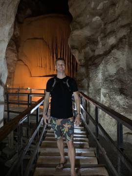 On our walk to Phra Nang, we encountered one of the many caves on the island that are part of the National Parks system. Thankfully the employee had on a National Parks polo shirt because otherwise we would have declined paying to go inside it, thinking that paying some guy admission to this place was a “common scam in Thailand.” He was legit, as was the cave, but the boardwalk that wandered through the cave system was not. It was a hot mess with missing boards and a patchwork of materials, all bonafide and significant tripping hazards. The cave itself was interesting and had a loud and noisy bat colony that lived inside it.