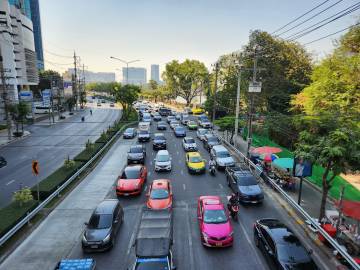 Bellies full we donned our backpacks and headed towards Benchakitti Park to kill time before we could check into our hotel. It is a beautiful green space amidst the urban madness of Bangkok. Along the way we passed the infamous Soi Cowboy. Scott had hoped to hang our hammocks in the park so we could take a much needed siesta but he was quickly shot down (verbally, not literally) by the park guard who barked a stern “NO!” in his direction as he unfurled the hammock and started stringing it up between two trees. Hammocking denied, we opted to just lay in a shady spot on the grass and rest.