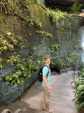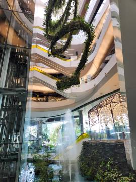 Bodies now beat into submission, we staggered out of the building in search of some lunch. We ended up at a large mall (one of thousands it seemed) near our hotel, called the Em Quartier. The malls in Bangkok were just unbelievable- several stories tall, chocked full of luxury goods stores (Hermes, Fendi, Dior, Louis Vuitton, etc.) and extravagantly decorated with waterfalls and live plants. We had heard that the food court here was worth checking out so we scouted out our options. We settled on a pizza place and split one while people-watching and admiring the ostentatious surroundings.