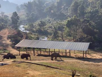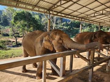Today was Elephant Jungle Sanctuary day! A minibus from the sanctuary picked us up bright and early from our hotel and we piled into it, introducing ourselves as we climbed over people and made our way to the empty seats in the back. There were people from several different countries1 already on the bus and we were all headed about an hour and a half southwest of Chiang Mai to the sanctuary. The bus stopped about halfway along the route for everyone to have a 7-11 and toilet break before continuing on.