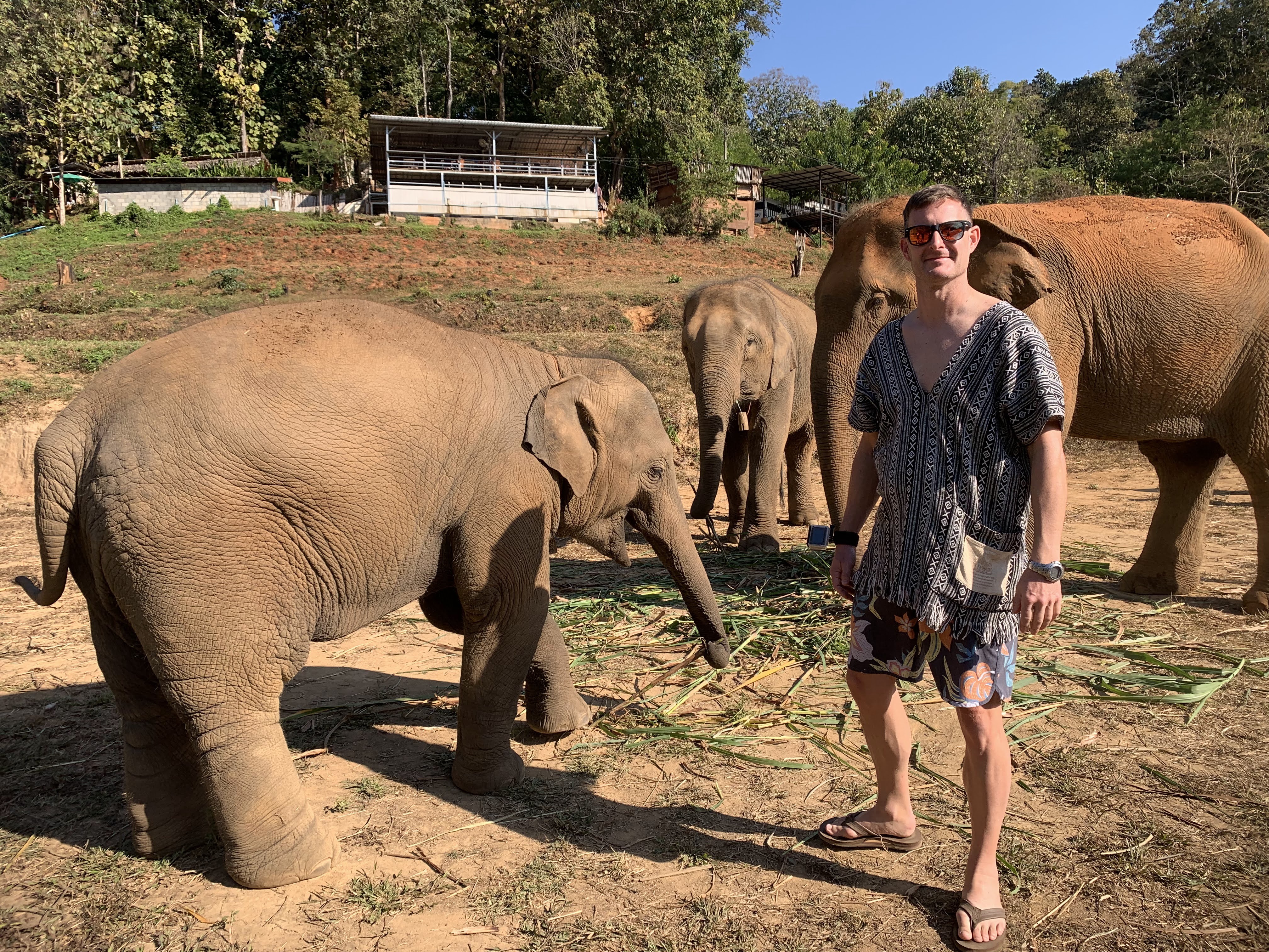 Author’s note: I had to pick my battles here. Through my research prior to our trip, I had learned that truly ethical elephant sanctuaries are touch free and do not let participants touch the elephants, only watch them from a comfortable distance. This means no feeding, no bathing, etc. While there has now been a movement to end elephant riding in Thailand, it is still technically legal, and many unsavory companies still offer it. However, there are many other ways that elephants are exploited for the entertainment of humans: logging, circuses, and even the activities that we did with them such as the feeding, and bathing. Elephants don’t need us to bathe and mudbathe them, and in fact, would probably prefer we not.