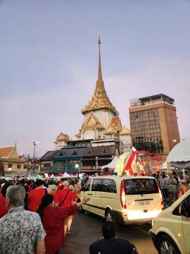 When we reached Yaowarat we joined a crowd that was gathered round a Jumbotron, some sort of livestream on its huge screen. After watching it for a few minutes we surmised that it was broadcasting some sort of ceremony and we eventually pieced together that it was members of the Thai royal family that were in a procession or formality of sorts. We then quickly realized that we were standing just a few meters away from where this exact ceremony was taking place and a few moments later we spotted who we would eventually learn was the Thai princess1, Princess Maha Chakri Sirindhorn, the King of Thailand’s sister.