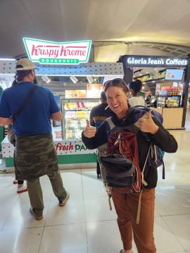 We were now in the final stretch of our Thai adventure and decided that our last real Thai food here should be mango sticky rice for dessert. We had no trouble finding a place that had this common treat and popped inside. It was glorious and we savored every bite. Bellies uncomfortably full we walked the last little bit back to the House of Papa and packed up in preparation for our flight home tomorrow (after showering of course since we had been around such a huge crowd and we know what a germaphobe I am).