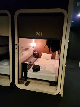 We had a long layover in Tokyo, but not long enough to leave the airport and go into the city. We had learned via a YouTube video that the Haneda airport had a “capsule hotel” where we could shower and attempt to catch a little sleep after the 13+ hour flight from Chicago. The capsule hotel idea was intriguing so I booked each of us a room (they are single occupancy and separated by gender) and it was nice to know that a spa and bed awaited us when we landed in Japan, only slightly delirious from the long day.