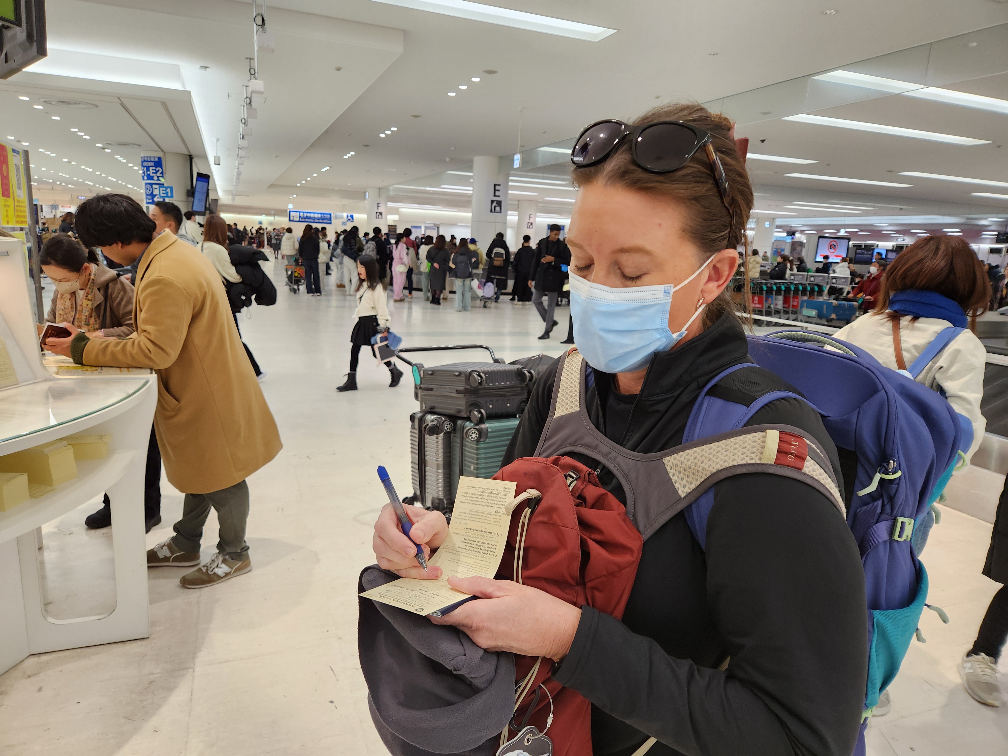 Finally it was January 13! My parents were sweet to drive us to the airport and they bid us adieu at GSP. The GSP to Chicago flight was smooth and we got settled into our seats for the next leg, the flight to Tokyo. It turns out that this flight was not full and a very nice flight attendant asked the man occupying the aisle seat next to me if he would like to move to another row, also an aisle seat, but with no one in the middle seat next to him, AND HE DECLINED. HE DECLINED. THE MAN DECLINED. Who does that? Scott leaned over and told him to expect that we would both be getting up several times because we go to the bathroom a lot3 and he shrugged and accepted his fate, quite nonplussed. So for the next 13.5 hours, anytime either one of us had the slightest inkling of a tinkle, you better bet we woke him up and told him to let us out. WHO DECLINES?