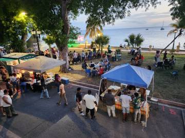 When I had collected sea glass to my heart’s content we headed back to Hilltop House to shower so we could head into Fredriksted for our last dinner on the island. When we got into town we were surprised by the hustle and bustle because all week it had seemed so sleepy. It turns out that they have a Rhythms at Sunset, a street festival with “live music, local vibes, and good company,” the third Friday of every month, and we had stumbled right into it.