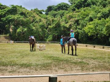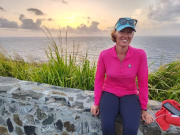 While I was teaching in the morning, Scott had decided to take the borrowed mountain bike out for a spin. He started out from the Pony Club grounds and headed into the Sprat Hall Nature Preserve that he had hiked earlier in the week. He covered 11.5 miles in a little under two hours and had fun exploring an abandoned Coast Guard station (he loves abandoned buildings) and an old lighthouse. He hung out at the lighthouse for a bit and took in the panoramic views of the island that it provided. From that vantage point he could see the Anallay Bay tidal pools and all of Cane Bay. The trail to the lighthouse was quite steep so he said that the way back down was much easier and faster!