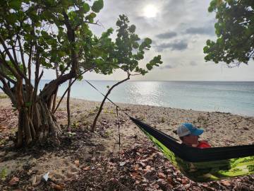 Scott dropped me back off at Sprat Hall for the afternoon sessions and then headed to Rainbow Beach for the afternoon where he strung his hammock between the trees right at the water’s edge and enjoyed looking out over the bay and occasionally taking a dip in the warm Caribbean. When he picked me up that afternoon we headed straight to Sandy Point to spend the rest of the evening.
