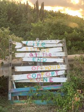 Scott had a quiet morning at his “summer camp” after several action packed days and just lounged around at Hilltop House until lunchtime when he came back to get me. I told him that everyone at camp had been impressed that we got up so early to catch the sunrise at Point Udall, have a relaxing breakfast in Christiansted and make it back to camp in time to teach. On our way back up to Hilltop House he pointed out something funny: a man driving a pickup truck had stopped earlier at a series of epic potholes along our route that we had been diligently avoiding all week, and had emptied out some construction waste directly into the holes that were apparently chips of concrete; a DIY civic improvement. To his credit, it was a vast improvement from its previous state and was a rather resourceful way of disposing of the concrete.