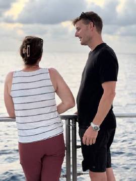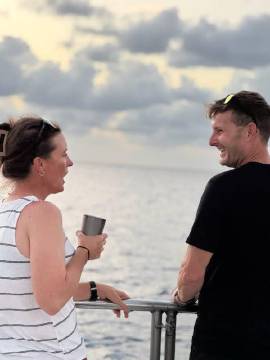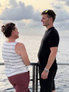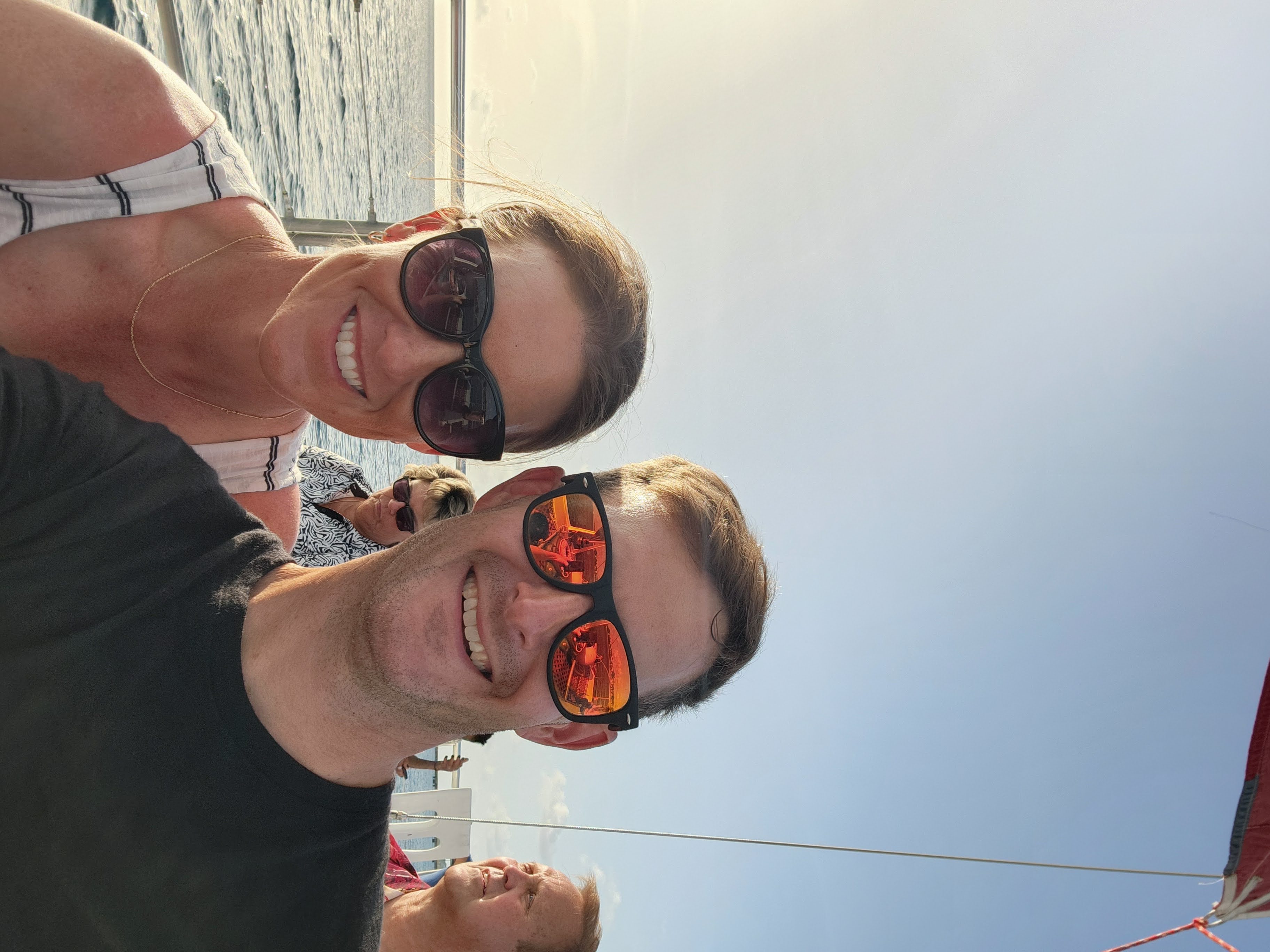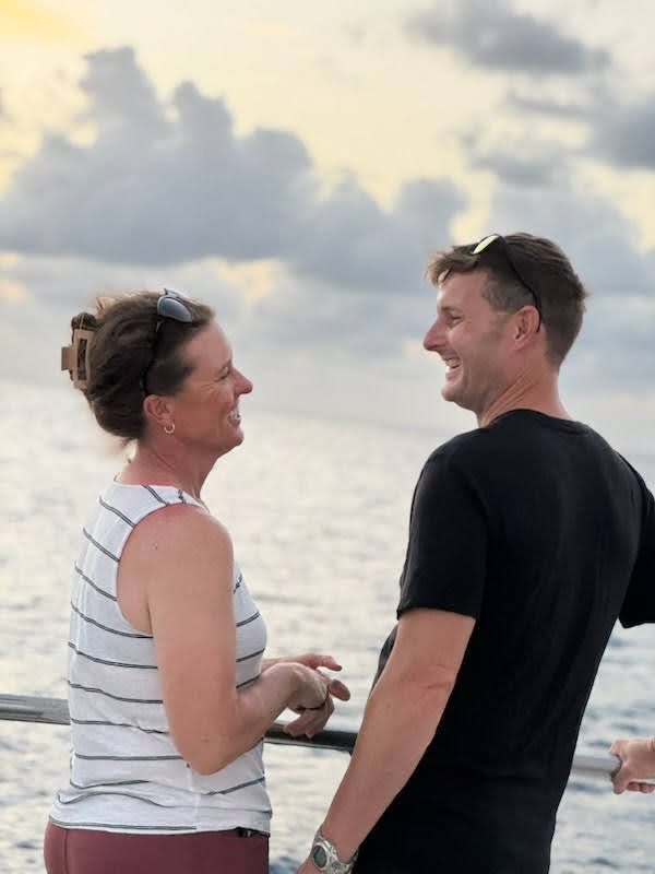 Where were we? Oh yes, the sunset cruise. We enjoyed getting front row seats and chatted with the family behind us- a group of siblings that had met up in STX from around the entire US. The rum punch started flowing1, and as always once I start drinking, I start telling Scott all the reasons he should marry me. And as this always goes, he tells me all the reasons we shouldn’t get married. It was during this passionate “Request for Proposal phase of the evening” (that’s what Scott calls this) as we were standing along the boat’s railings looking out over the dramatic colorscape that the sunset offered up that evening, that the siblings we had met took the VERY BEST photographs of us that I have ever seen. We had no idea that they’d taken them and when we eventually sat back down they said “I hope you don’t mind but we wanted to snap some pictures of you guys because it looked like you were enjoying yourselves so much.” We thanked them profusely and assured them there was nothing weird at all about them having done so and they shared the photos with us. I am so thankful of their kind gesture because it captured candid snapshots of an incredible evening for us and the shots so perfectly capture and sum up our relationship.