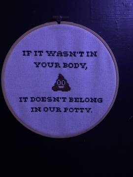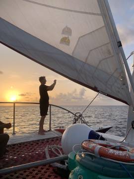 We chatted with the crew some, learning how they came to be in STX and the captain and first mate of the Jolly Mon. I needed to take a trip down to the “head.” The entire time I was down there I was remembering the instructions we had received in our briefing and was reciting them in my head chant-like as a reminder as well as seeing them reiterated artistically in needlepoint on a sign directly across from me: “If it wasn’t in your body, it doesn’t belong in our potty.” I had the best intentions of putting the toilet paper in the trash can next to the loo, I really did, and then just out of sheer muscle memory and habit, I promptly dropped it into the bowl. Instantly discovering the error of my ways, I panicked and in a split second decision, decided that maybe the same 3-second rule that applies to dropped food on the floor also applies to dropped T.P. into the water and snatched the just dropped wad of T.P. out of the potty. It must have been marine T.P. because it was already starting to disintegrate, but I gamely fisted what I could and threw it away in the correct spot, assuring myself that my bravery saved the ship from certain doom. And then I spent the next five minutes washing my hands.