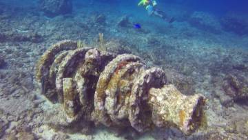Scott got back a little after lunch and told me about his dive. The dive shop was about 20 minutes away from our boat, and was called Key Largo Dive Center. They did two dives and it was just Scott, one other customer, several staff and guides, and one student diver. Both of the dives were at Molasses Reef- the first spot was called Winch Hole and the second was called Aquarium. At the first he saw a barracuda, several interesting schools of fish, and the coral-encrusted winch that was the namesake of the location. At Aquarium, he saw a number of parrot fish, a 7 foot reef shark, an old Spanish anchor, and he enjoyed swimming through some cool coral caverns.