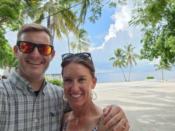 Today was Holly and Bradley’s wedding day! Because the ceremony and reception weren’t until 5:00 PM, Scott was planning on diving and I was looking forward to a relaxing morning on “our” boat at the marina. The Airbnb proprietor had come by and replaced our glitchy coffee machine the day before so we now had a fully functioning one. Scott left around 7 AM and I slept in until the indulgent hour of nearly 8 AM which is unheard of for me now in middle age- usually I am lucky to make it to 6:30 AM.