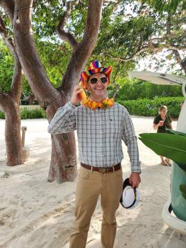 We had a little time before we needed to shower and get dressed for the wedding so we decided to take out one of the kayaks that we had access to with our rental. We decided on the tandem kayak and I was surprised when we were able to both lower ourselves down into it off the dock successfully without capsizing it. We (and by “we” I mean mostly Scott) paddled our way out of our marina’s channel and into the bay. The bay was protected on three sides by mangroves and made a protected area for anchoring boats. We paddled around the area for a while and observed some of the boats before hopping out of the kayak and taking a little float next to it. The water was surprisingly shallow and the sand was unpleasantly squishy, reminding me of Lake Hartwell’s muddy base as it squished between my toes so I didn’t spend much time out of the boat. We decided to head back in and we were now paddling against the current so I actually helped Scott paddle this time. We disembarked from the kayak and climbed back up onto the dock surprisingly easily, again not capsizing the boat.