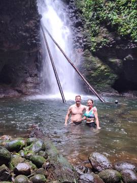 Well, it turns out Carlos had been calling it a “hidden” waterfall, not a “heated” waterfall, but with his accent I kept hearing “heated.” So that’s how I came to be pummeled by a regular ol’ waterfall because otherwise I probably would have hung back, not wanting to get cold. (Insert lol emoji here!) When I told Scott he really did laugh out loud and asked me how the heck a waterfall would be heated. I shrugged and said “I don’t know, I guess I thought it was warm because of all the thermal springs in the area.”