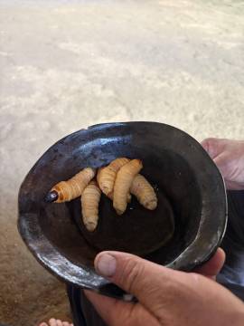 I was the first person that she had come to on my side of the building, and I suppose I hadn’t really been paying attention when she served the other side, because before I really thought about it much, I accepted the little wooden bowl of hooch she offered me and put my lips to its edge and drank it down. And then I watched her take the same cup that I had just drank from and dip it into the bucket and offer it to Scott, who while still laughing at me, shook his head aggressively, declining her offer, and then she moved on to the next person. So that happened.