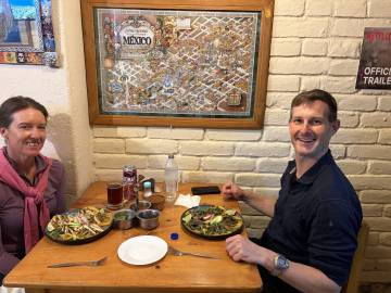 The proprietor suggested her favorite restaurant for dinner, a Mexican place a short walk away, and we took her suggestion. Dinner was lovely and on our stroll through town we were entertained by how wild and lively the city was this evening. Our favorite thing we saw were the little themed trains covered in neon lights and blasting music that were parading visitors around the city, paying zero attention to any sort of traffic laws.